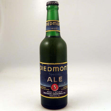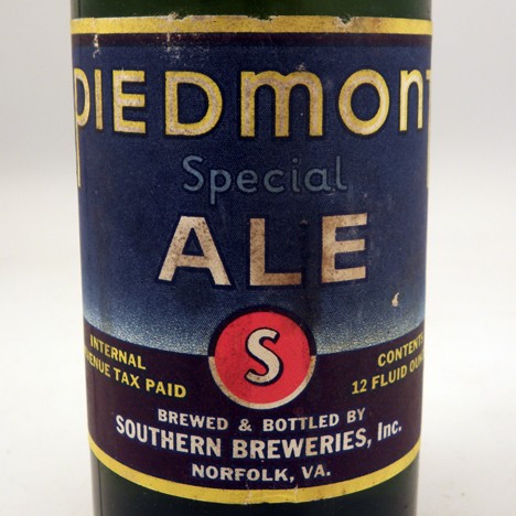 This vintage Piedmont Special Ale beer bottle from Southern Breweries, Inc. in Norfolk, Virginia is IRTP with a Piedmont Special Ale neck label and the MD state tax stamp on its cap.
