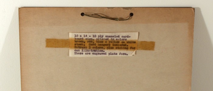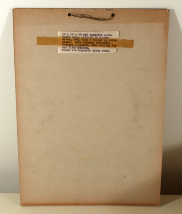 Sign appears to be a salesman's sample, with color and other info taped to the back.
